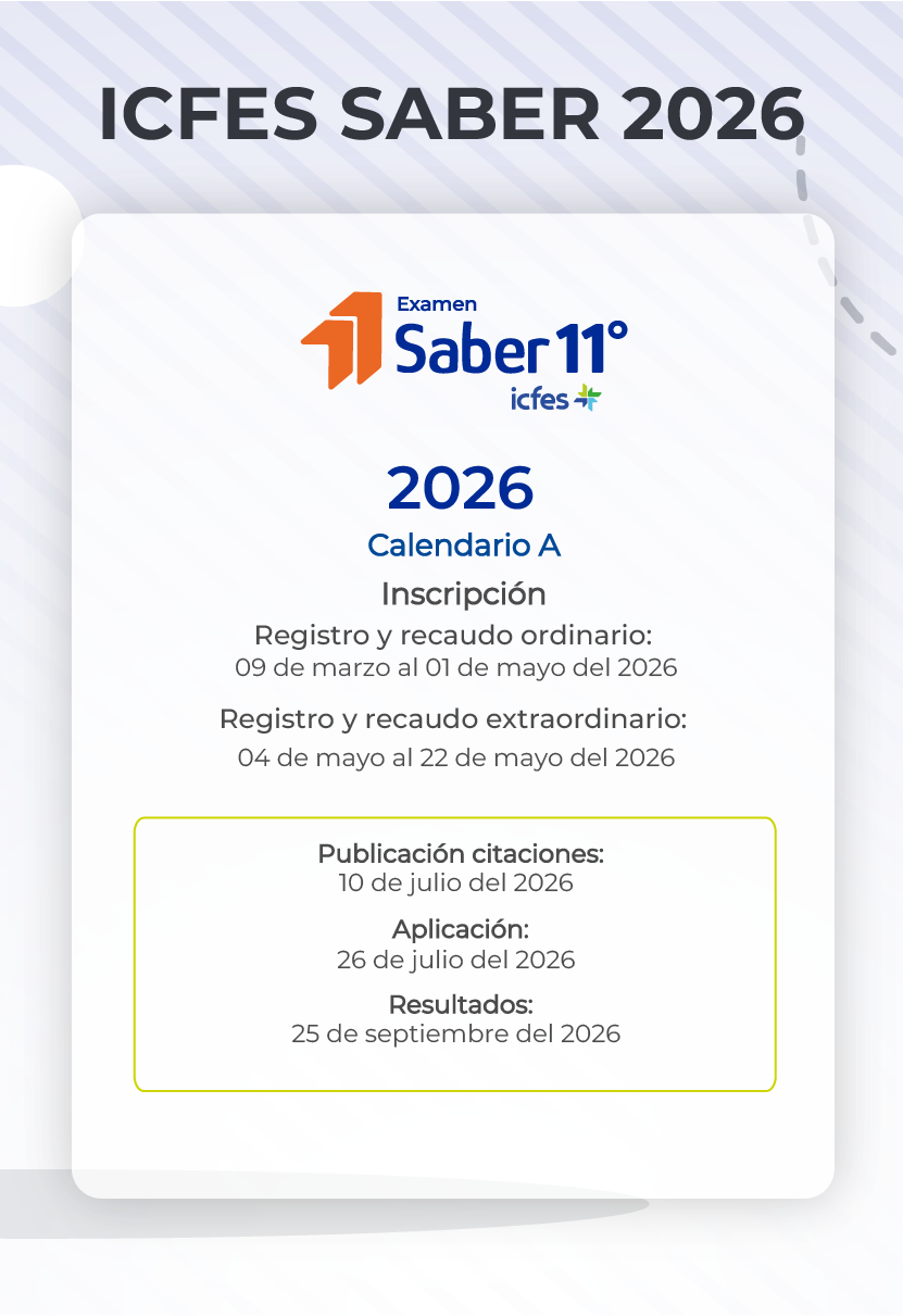 Inscribir 9° - 10°Curso especializado con docentes expertos, simulacros tipo ICFES y seguimiento académico personalizado.